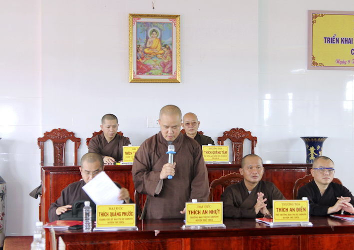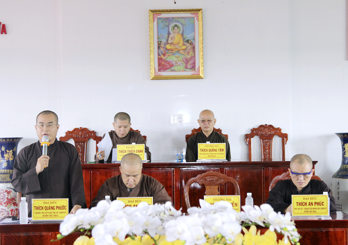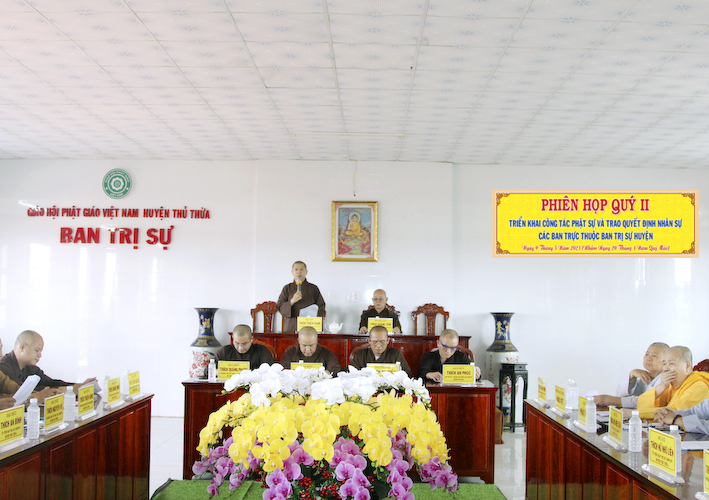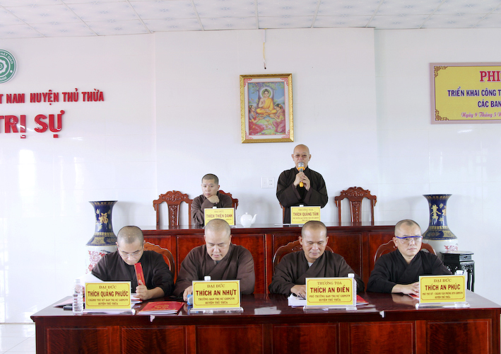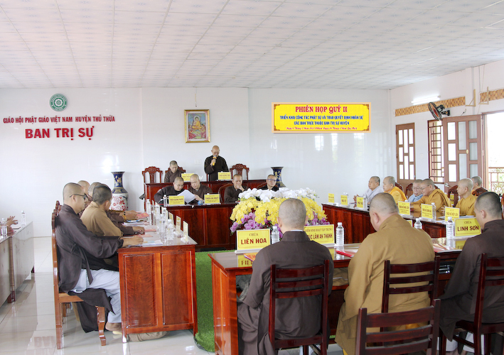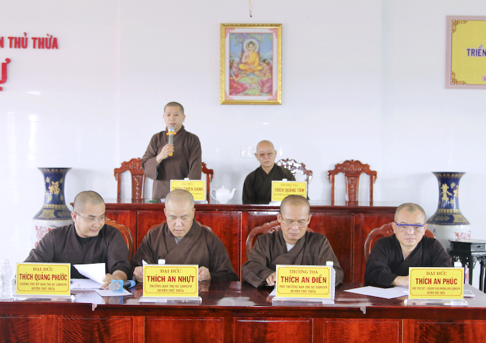 Tại phiên họp, Đại đức Thiện Danh, Phó thư ký – Chánh văn phòng BTS.GHPGVN tỉnh Long An phát biểu: “Thông qua kế hoạch tổ chức tổ chức Đại lễ Phật Đản PL : 2567 tại huyện Thủ Thừa, về việc thỉnh Hoà thượng Trưởng ban Trị sự GHPGVN tỉnh Long An giảng pháp có thể sửa lại là thỉnh các thành viên BHP tỉnh giảng tại lễ đài trung tâm BTS.GHPGVN huyện Thủ Thừa và các vấn đề liên quan đến thủ tục hành chánh độ đệ tử xuất gia.