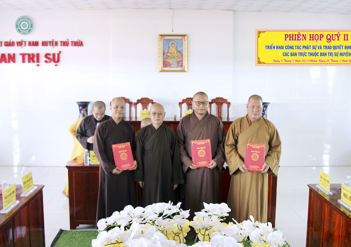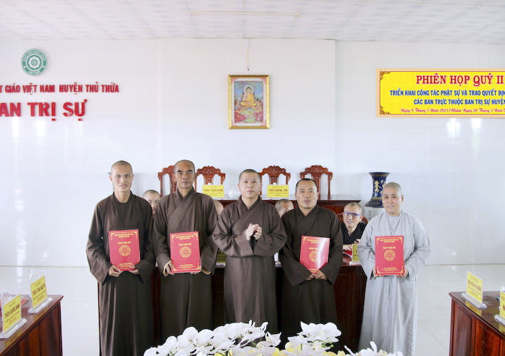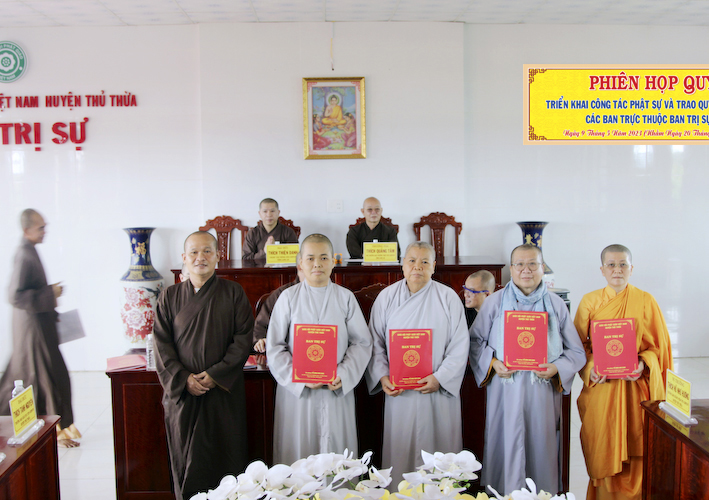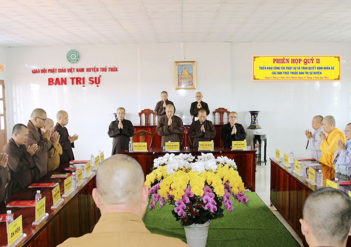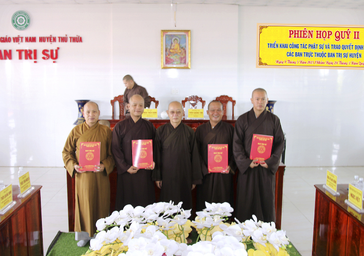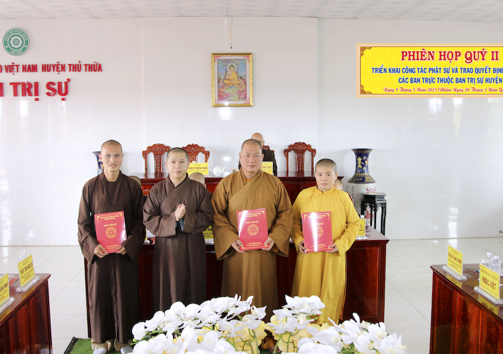 Vào lúc 8 giờ sáng, ngày 9 tháng 5 năm 2023 ( nhằm ngày 20 tháng 3 năm Quý Mão), tại văn phòng BTS.GHPGVN huyện Thủ Thừa, chùa Kim Cang, ấp Bình Cang 1, xã Bình Thạnh, huyện Thủ Thừa, tỉnh Long An đã tổ chức phiên họp định kỳ quý 2, đồng thời triển khai những công tác phật sự quan trọng trong thời gian tới và lễ chuẩn y nhân sự các ban trực thuộc BTS.GHPGVN huyện Thủ Thừa.