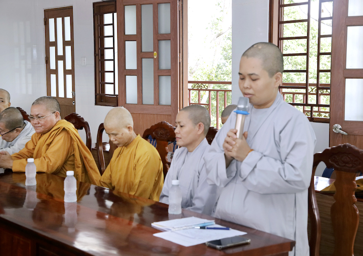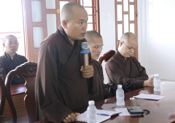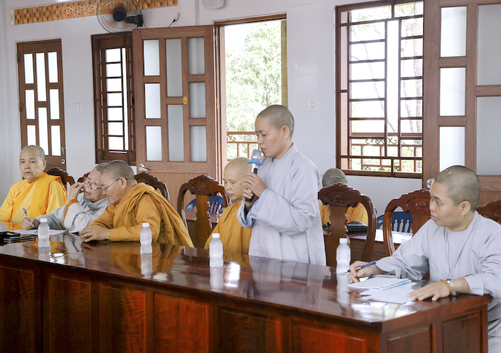 Tại phiên họp định kỳ, Chư tôn đức Tăng Ni trụ trì các tự viện, các điểm SHTGTT đã lần lượt báo cáo các hoạt động Phật sự và công tác từ thiện trong những tháng vừa qua.