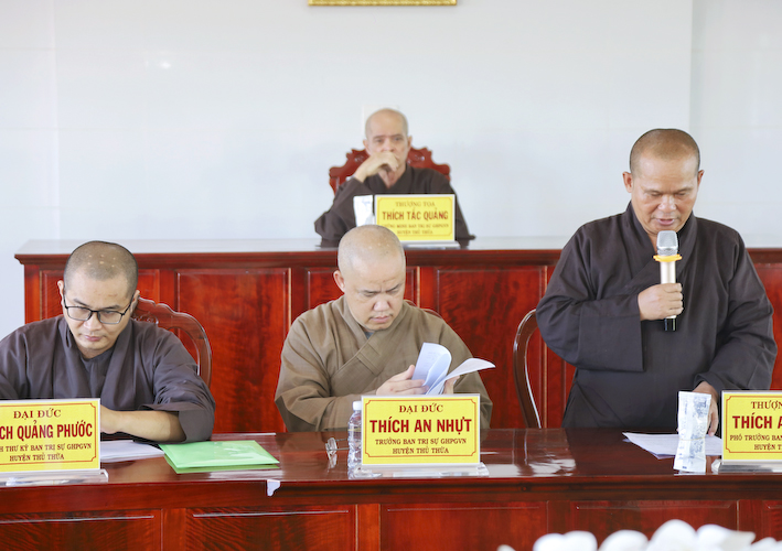 Sau cùng, Đại đức Thích An Nhựt, đã thay mặt chư tôn đức Tăng Ni trong Ban thường trực có lời cảm ơn đến toàn thể Chư tôn Thượng tọa chứng minh. Chư tôn đức Tăng Ni trong Ban Thường trực BTS GHPGVN huyện Thủ Thừa, Chư tôn đức Tăng Ni trụ trì các tự viện trong huyện nhà lời chức Sức khoẻ – Vô lượng an lạc – Vô lượng kiết tường.