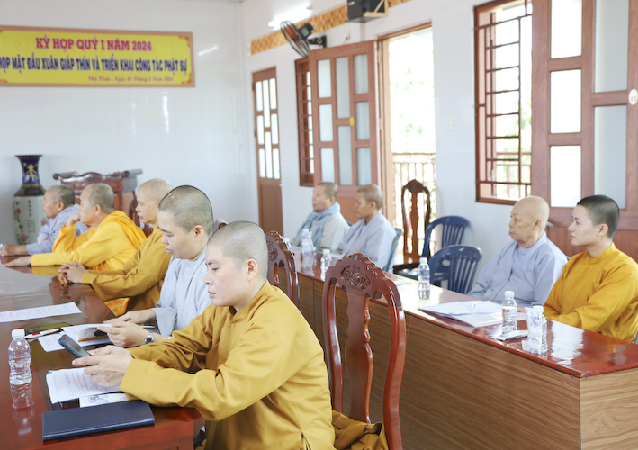 Vào lúc 10 giờ phút phiên họp định kỳ quý I – năm Giáp Thìn đã diễn ra thành công tốt đẹp, trong sự chứng minh và hoan hỷ của chư tôn đức Tăng Ni.