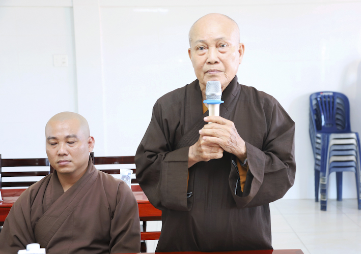 Công tác an sinh xã hội, do tình hình kinh tế khó khăn, mong chư tôn đức cố gắng tiếp tục hỗ trợ cho công tác an sinh xã hội trong huyện nhà. Nhất là hỗ trợ cho Trường Bồ Đề Phương Duy”.