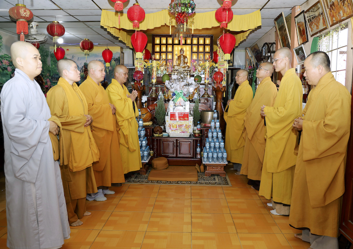 Sáng ngày 16 và 17 tháng Chạp năm Quý Mão, Tại văn phòng BTS GHPGVN huyện Thủ Thừa, Tổ đình Kim Cang, ấp Bình Cang 1, xã Bình Thạnh, Chư tôn đức Tăng Ni trong Ban Thường trực BTS đã tổ chức phái đoàn đi thăm và chúc tết các cơ sở tự viện, các điểm SHTGTT, các tư thất trong địa bàn huyện.