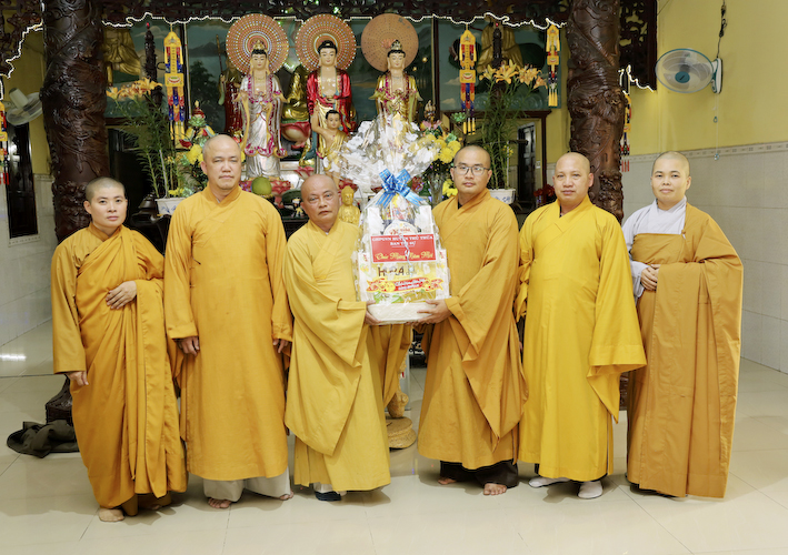 Phái đoàn do Đại đức Thích An Nhựt Trưởng BTS.GHPGVN huyện Thủ Thừa làm trưởng đoàn. Tháp tùng phái đoàn có sự hiện diện của TT Thích An Điền – Phó BTS. ĐĐ Thích Quảng Phước – Chánh thư ký BTS. TT Thích Minh Trí – Trưởng Ban TT – TT. ĐĐ Thích Quảng Minh – Trưởng Ban nghi lễ BTS. ĐĐ Thích Nguyên Vũ – Trưởng Ban văn hóa. ĐĐ Thích Trung Ngọc. Sư cô Thích nữ Hiệp Liên – Thủ Quỹ. Sư cô Thích nữ Chơn Bảo – Trưởng Ban KT – TC.