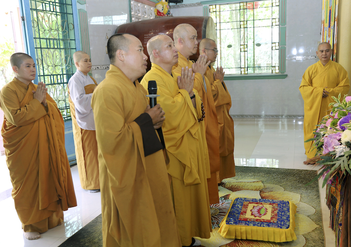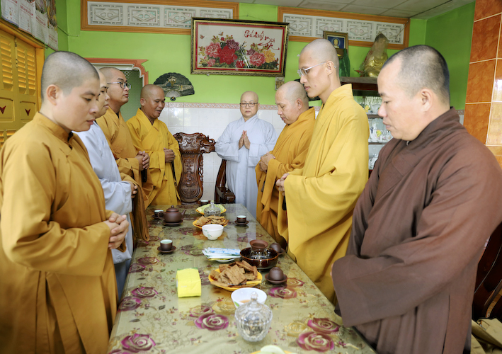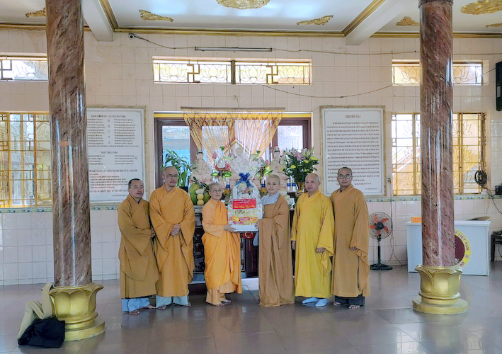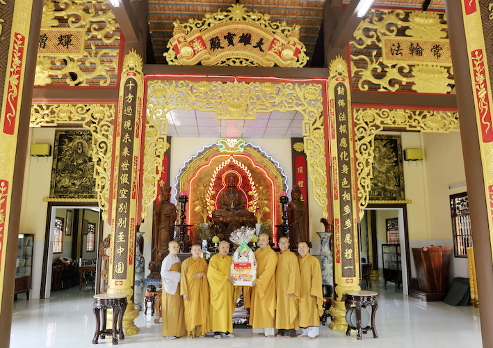 Phái đoàn  xuất phát từ Văn phòng BTS (Tổ đình Kim Cang) đi đến các tự viện như: Tịnh thất Vạn An, Chùa An Phú,Chùa Thanh Long, Chùa Linh Sơn Cổ, Chùa Long Hòa, Chùa Linh Sơn (cù lao), Chùa Hòa Bình, Chùa Liên Hoa, Tịnh Xá Ngọc Bửu, Chùa Thiên Phước, Tịnh Xá Ngọc Tân, Chùa Phật Huệ, Tịnh Xá Ngọc Thặng, Chùa Hư Không, Chùa Long Hòa(kp11), Chùa Bửu Linh, Chùa An Hòa, Chùa Long Vĩnh và các điểm sinh hoạt tập trung : Khánh Minh, Trúc Lâm An Thạnh, Ngọc Việt, Vĩnh An, Bửu Liên, Ngọc Đức và các tư thất: Thầy Nguyên Quảng, Thầy Hồng Chánh, Thầy Minh trí, Thầy Minh Sơn, Sư Cô An Hương, Sư Cô Phương Tâm, Sư Cô Tịnh, của chư Tôn Đức Tăng Ni đã chuyển Tăng sự về sinh hoạt trên địa bàn huyện.