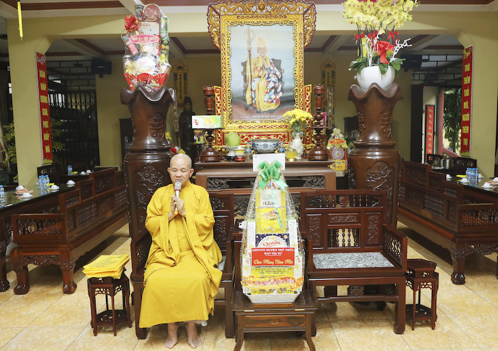 Nhân dịp này Hòa thượng cũng đã chuyển lời chúc tốt đẹp của Ngài Bí thư Tỉnh ủy tỉnh Long An đến chư tôn đức Tăng Ni trong toàn tỉnh “Chúc sang năm mới được an vui hạnh phúc và thành đạt. Nhất là tiếp tục phát huy tinh thần đoàn kết và trang nghiêm giáo hội và thực hiện tốt những chương trình an sinh xã hội. Mong rằng Phật giáo hỗ trợ tích cực hơn con đường đạo đức cho giới trẻ”.