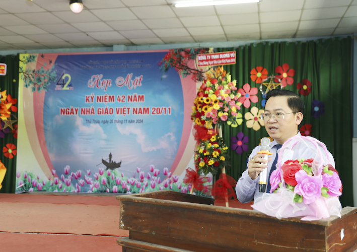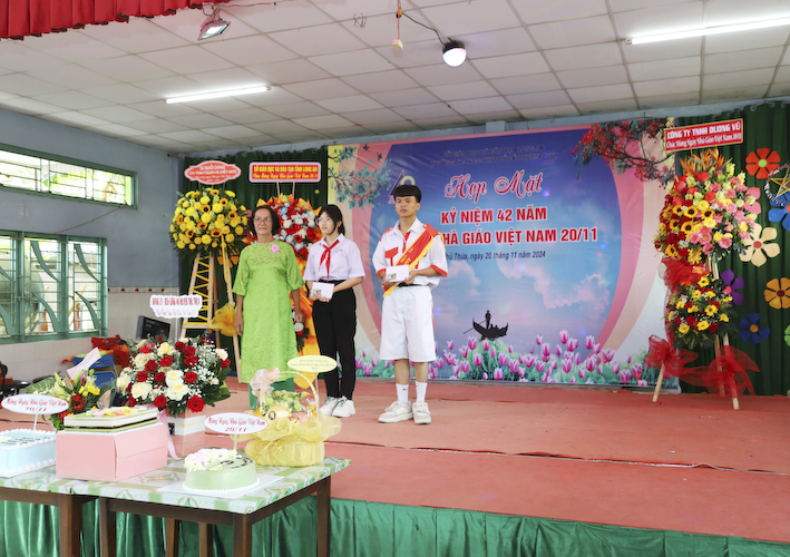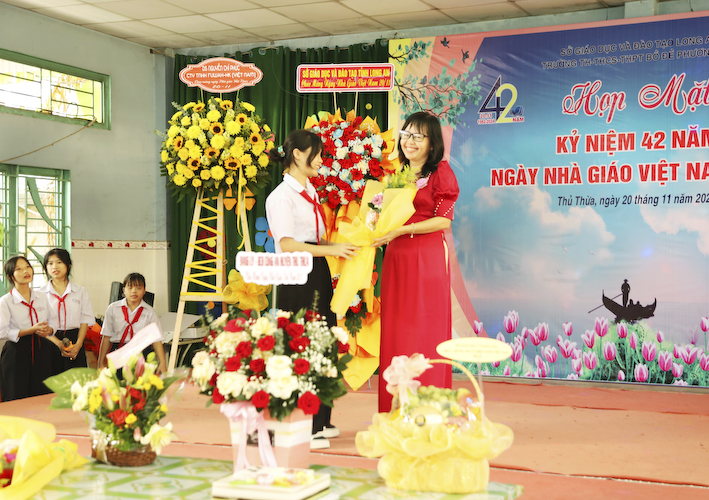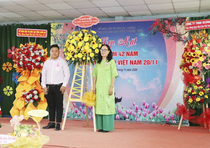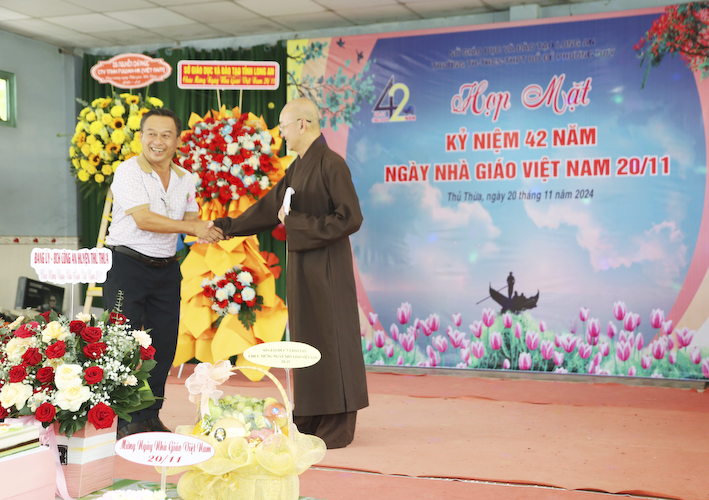 Tham dự lễ kỷ niệm ngày nhà giáo Việt Nam, ngày 20 tháng 11 năm 2024, có sự hiện diện của Ông Nguyễn Hồng Phúc – PGĐ Sở GDĐT Long An. Bà Đặng Phương Phi – Nguyên GĐ Sở GDĐT Long An. Ông Nguyễn Ngọc Thiện – Chủ Tịch Công Đoàn ngành GDĐT Long An– Bà Nguyễn Thị Huệ – PCT Hội Giáo chức tỉnh Long An. Thượng tá Trần Văn Nhân – Chính Trị viên, BCHQS huyện Thủ Thừa. Thượng tá Võ Văn Triều – Phó Trưởng Công an huyện Thủ Thừa. Bà Nguyễn Thị Dạ Thảo – Phó Ban Tuyên giáo Huyện ủy huyện Thủ Thừa. Ông Huỳnh Thanh Vũ- Phó ban Dân vận huyện ủy Thủ Thừa. Bà Nguyễn Thị Thu Lan – Phó CTUBMTTQVN huyện Thủ Thừa. Bà Lục Thị Huệ Phương – PGĐ TTVH TT-TT huyện Thủ Thừa .v.v. Bà Trần Gia Linh – PBT huyện Đoàn huyện Thủ Thừa. Ông Võ Thanh Quân – Phó bí thư Đảng Ủy, CT UBND TT Thủ Thừa.