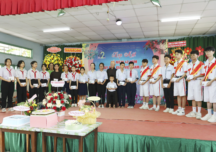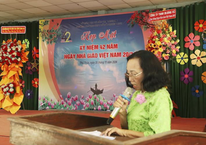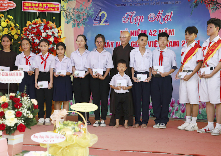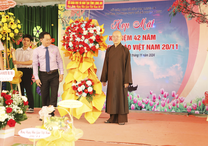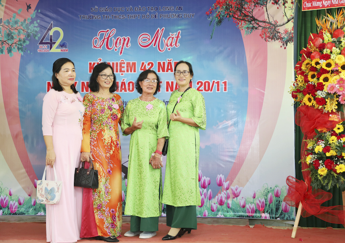 Hôm nay, Trường Bồ Đề Phương Duy cũng chào mừng ngày Nhà giáo Việt Nam. Với đông đủ các Ban ngành trong tỉnh, huyện và đầy đủ tất cả quý Thầy Cô các thế hệ đồng về tham dự. Chúng tôi vô cùng biết ơn quý Thầy Cô trong những năm qua đã dạy dỗ các em trẻ mồ côi thành những người có trí thức, nhằm góp phần cùng xã hội ngày càng phát triển hiện đại, văn minh, giàu đẹp.