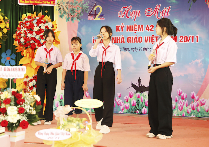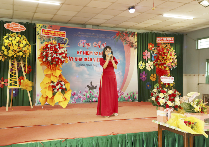 Nhân ngày nhà giáo Việt Nam, toàn thể hội trường đã có dịp ôn lại truyền thống ngành giáo dục, nghe qua báo cáo về công tác giáo dục của nhà trường, tổng kết phong trào thi đua, và được nghe phát biểu của lãnh đạo chính quyền địa phương.