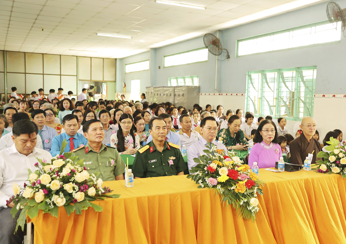 Thượng tọa Thích Quảng Tâm – UVHĐTSTW GHPGVN, Phó Trưởng ban Thường Trực BTS GHPGVN tỉnh Long An, Trụ trì chùa Long Thạnh, Chủ tịch Hội đồng Trường Bồ đề Phương Duy. Chư tôn đức Tăng trong BTS GHPGVN huyện Thủ Thừa; Cô Huỳnh Thị Thu Loan – Hiệu Trưởng – TH – THCS – THPT Bồ Đề Phương Duy .Quý Thầy Cô và các học sinh trường Bồ Đề Phương Duy hoan hỷ về tham dự.