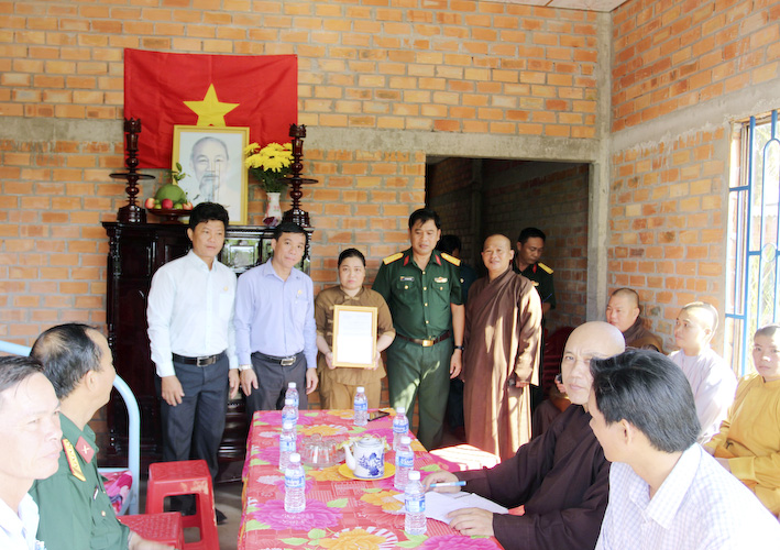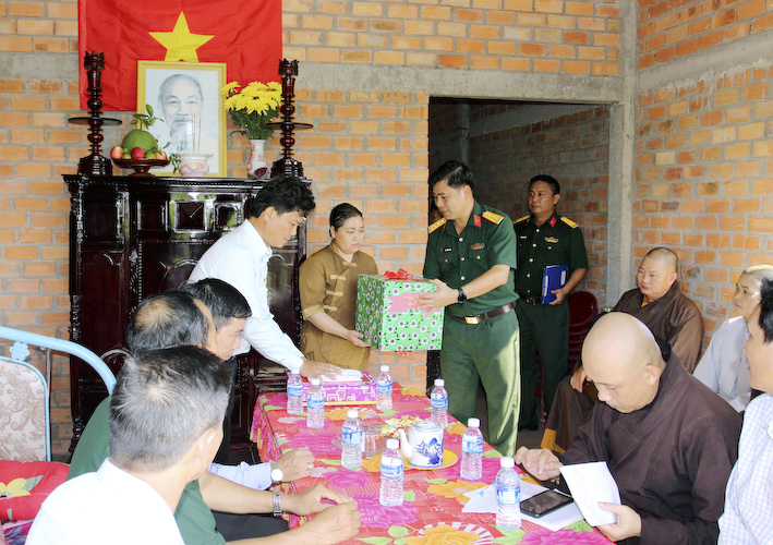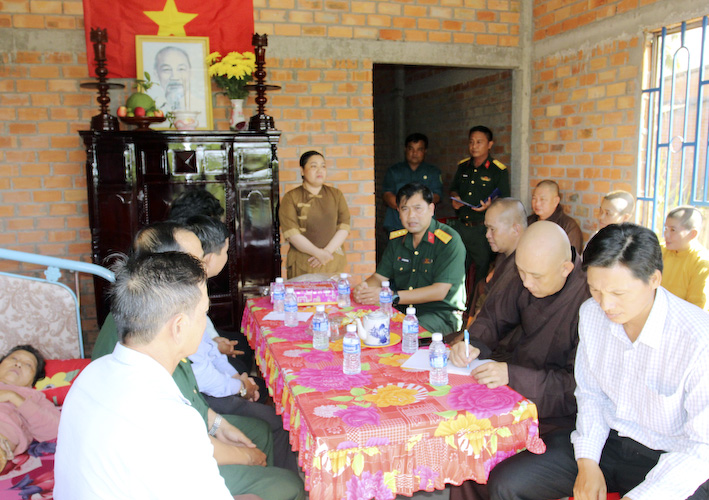 Trong ngày trọng đại này, người con gái cụ Bà đã có lời cảm ơn đến chư tôn đức Tăng Ni trong BTS huyện và chính quyền địa phương các cấp, BCH quân sự huyện Thủ Thừa đã tạo mọi điều kiện thuận lợi để có căn nhà tốt đẹp như hôm nay.