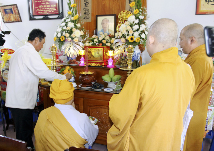 Tại buổi lễ, chư tôn đức Tăng Ni đã niêm hương tưởng niệm công đức và đạo nghiệp của Cố Ni trưởng với những đóng góp tích cực cho sự nghiệp hoằng dương Phật pháp trong huyện nhà.