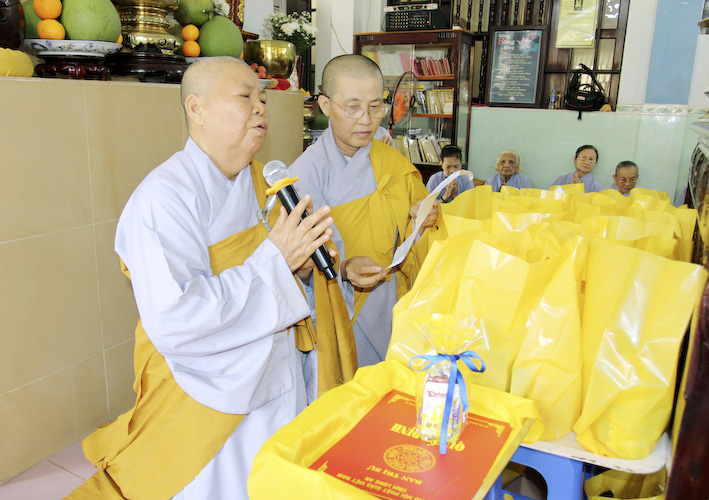 Về phía chư Ni có sự hiện diện của Ni trưởng Thích Nữ Tuệ Đăng – Phó Trưởng ban Trị sự, Trưởng phân ban Ni giới GHPGVN tỉnh Long An. Chư tôn đức Ni trụ trì các tự viện, tịnh xá trong và ngoài huyện đồng về tham dự.