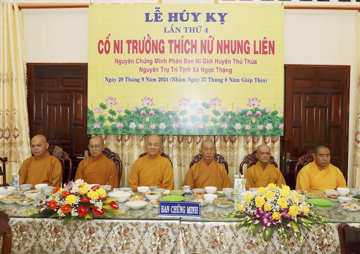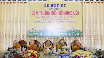 Trong 2 ngày 28-29 tháng 09 năm 2024, nhằm ngày 26-27 tháng 08 năm Giáp Thìn, tại đạo tràng tịnh xá Ngọc Thặng, số 022/99 Phan Văn Tình, thị trấn Thủ Thừa, huyện Thủ Thừa, Ni trưởng tịnh xá Ngọc Thặng và môn đồ pháp quyến đã long trọng tổ chức lễ Húy kỵ lần thứ 4 Cố Ni trưởng Thích nữ Nhung Liên, nguyên Chứng minh phân ban ni giới PGVN huyện Thủ Thừa, nguyên Trụ trì Tịnh Xá Ngọc Thặng.