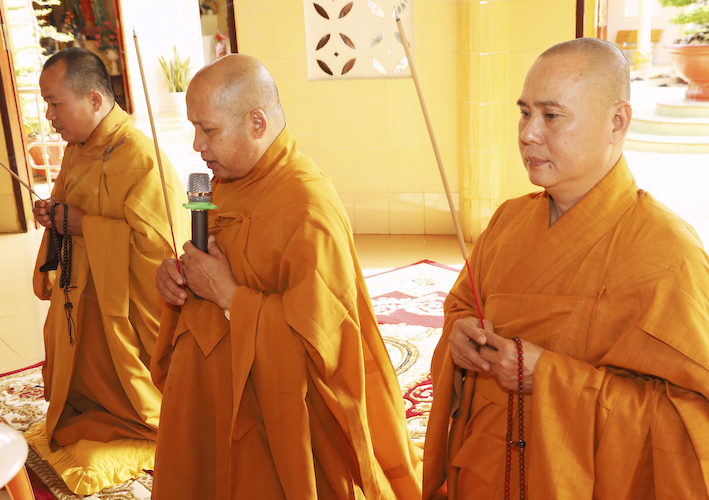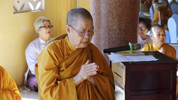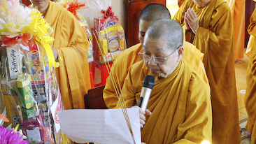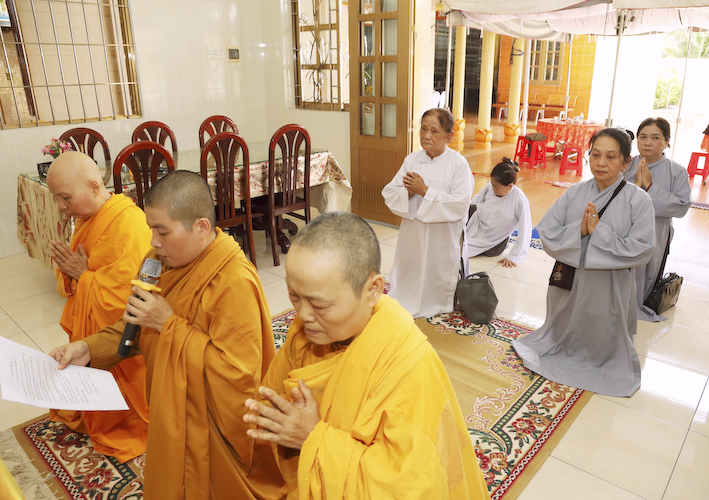 Thay mặt cho toàn thể môn đồ pháp quyến, Sư cô Thích nữ Hiệp Liên kính cẩn dâng lời tác bạch lên chư tôn thiền đức chứng minh.