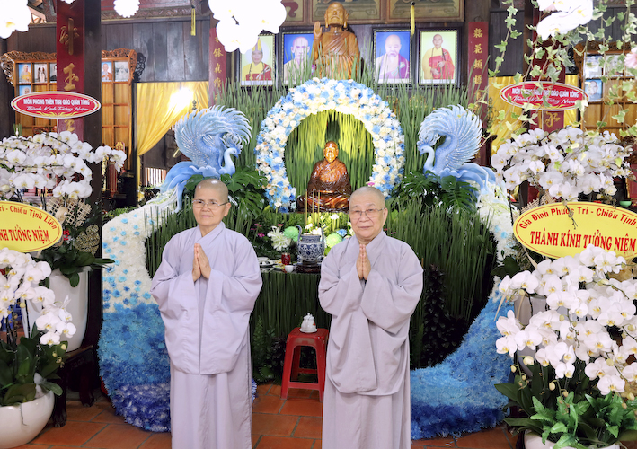 Quang lâm chứng minh và tham dự buổi lễ có sự hiện diện của Hòa Thượng đạo hiệu Thích Thiện Huệ – Thành viên HĐCM, Chứng minh BTS GHPGVN tỉnh Long An; Hòa Thượng đạo hiệu Thích Huệ Văn – Thành viên HĐCM, Cố vấn BTS GHPGVN TP.HCM, Cố vấn Ban Điều hành Tông phong Thiên Thai Giáo Quán; Hòa Thượng đạo hiệu Thích Lãng Huỳnh – Thành viên HĐCM, Trưởng Tông phong Thiên Thai Giáo Quán; Hòa Thượng đạo hiệu Thích Thiện Tài, Hòa Thượng đạo hiệu Thích Huệ Hồng – Đồng Chứng minh BTS GHPGVN tỉnh Long An; Hòa Thượng đạo hiệu Thích Minh Thiện – UV HĐTS, Phó ban Hoằng pháp TW, Trưởng BTS GHPGVN tỉnh Long An; Thượng tọa đạo hiệu Thích Quảng Tâm – UV HĐTS, Phó Trưởng ban Thường trực BTS GHPGVN tỉnh Long An; Thượng tọa đạo hiệu Thích Tắc Bạch – UV HĐTS, Chánh Thư ký Ban Điều hành Tông phong Thiên Thai Giáo Quán; Chư tôn đức trong Ban Thường trực BTS GHPGVN tỉnh Long An, huyện Cần Giuộc và các huyện, thị xã, thành phố trực thuộc; Chư tôn đức Ban Điều hành và Đại diện các tự viện Tông phong Thiên Thai Giáo Quán và chư tôn đức tăng ni trụ trì các tự viện trong và ngoài huyện đồng về tham dự.
