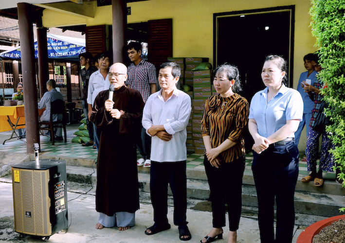 Đại đức Thích Tắc Hoà Trưởng ban Văn Hóa huyện Cần Giuộc, Tri sự chùa Tôn Thạnh thay mặt cho toàn thể môn đồ pháp quyến, Tông phong Thiên Thái Giáo Quán dâng lời tác bạch lên chư tôn đức chứng minh.