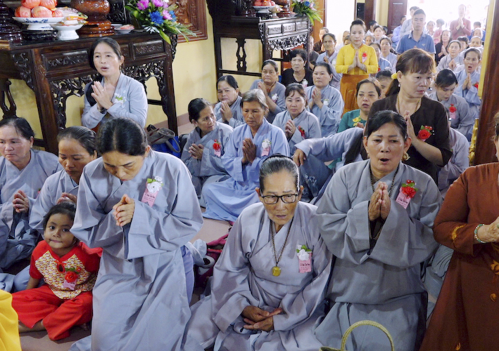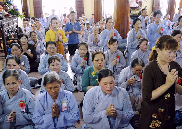 Vào lúc 10 giờ là nghi thức Cài Hoa Hồng, tưởng nhớ Tứ trọng ân, là ân Cha Mẹ, ân Thầy Tổ, ân Quốc gia và ân Chúng sanh vạn loại.