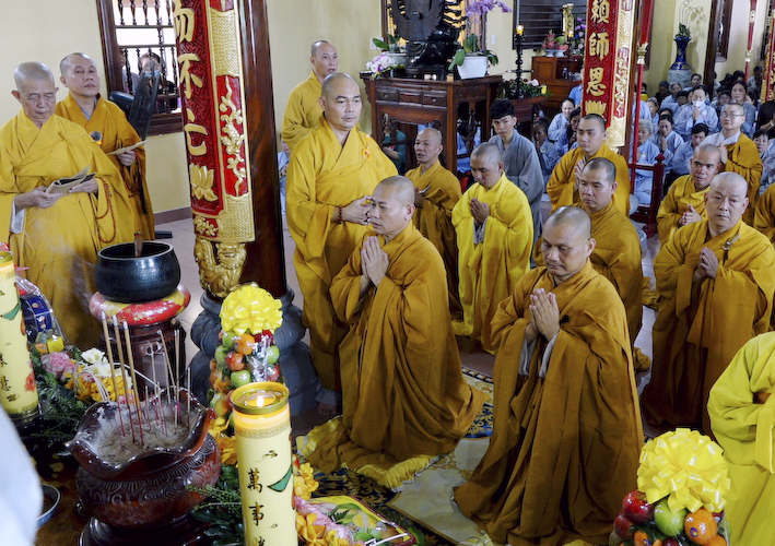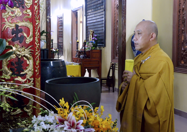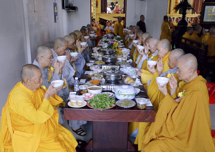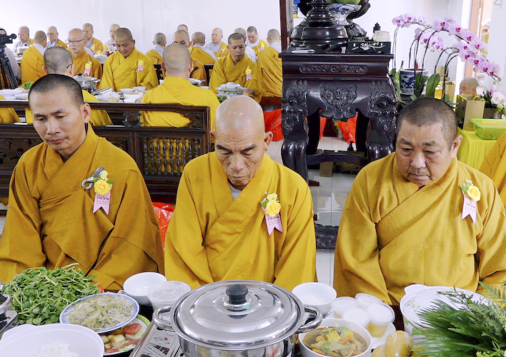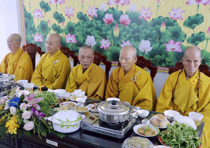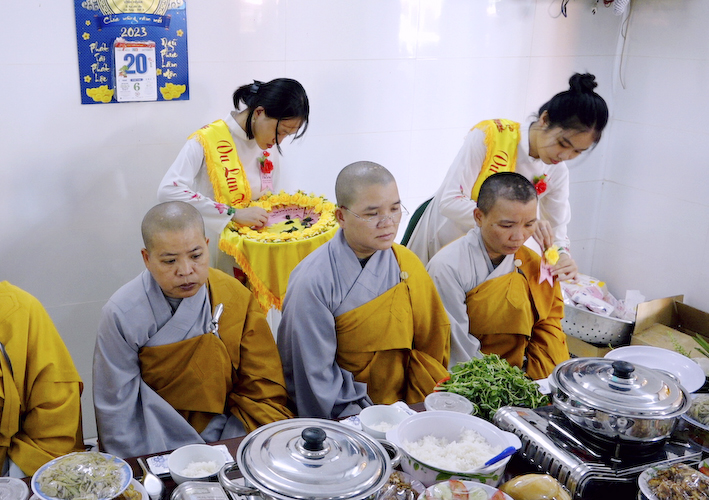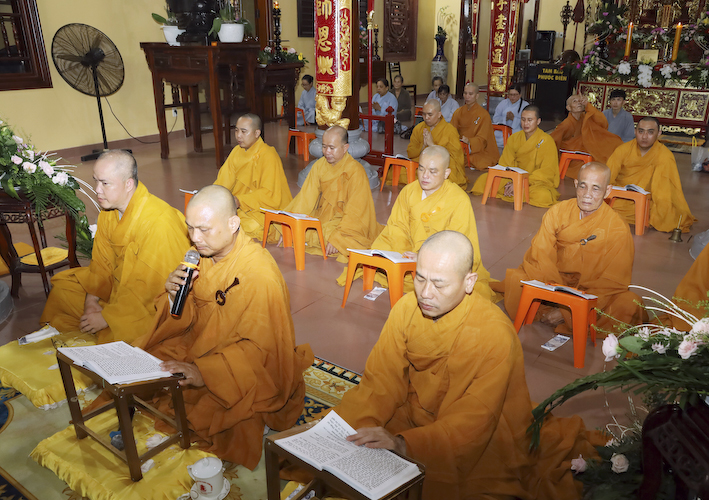 Vào lúc 9 giờ , Thượng tọa Thích An Trung đã hướng dẫn chư tôn đức Tăng Ni và phật tử tại đạo tràng thực hiện nghi thức cúng Ngọ. Cầu nguyện Cố Hoà thượng Cao Đăng Phật Quốc. Đồng thời cầu nguyện thế giới hòa bình, chúng sanh an lạc.