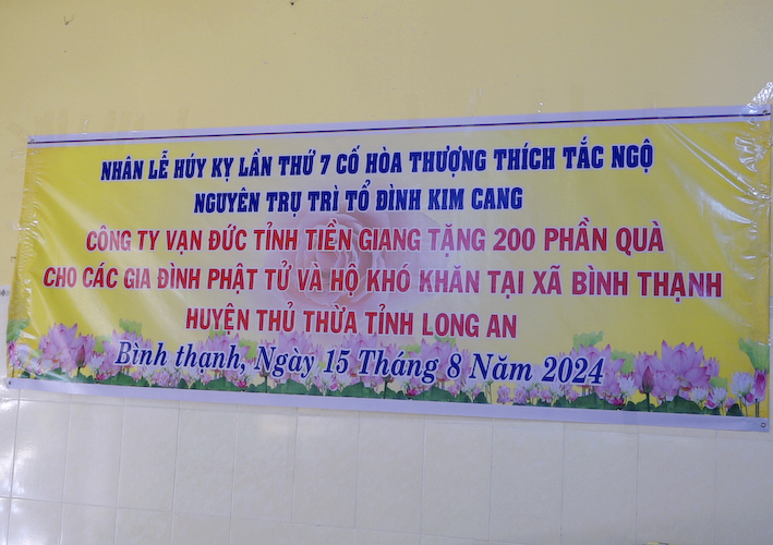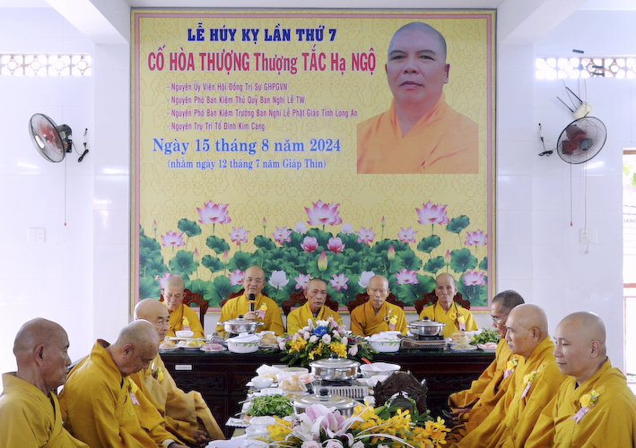 Sáng ngày 15 tháng 08 năm 2024, nhằm ngày 12 tháng 07 năm Giáp Thìn, tại đạo tràng Tổ đình Kim Cang, ấp Bình Cang 1, xã Bình Thạnh, huyện Thủ Thừa, Đại đức Thích An Nhựt, Trụ trì Tổ đình Kim Cang, hiệp cùng chư Tăng tại Tổ đình và môn đồ pháp quyến đã long trọng tổ chức lễ Húy kỵ lần thứ 7, Cố Hoà thượng thượng Tắc hạ Ngộ, Nguyên UV HĐTS TWGHPGVN, Phó ban kiêm Thủ quỷ Ban Nghi lễ Trung ương, Phó ban kiêm Trưởng ban nghi lễ GHPGVN tỉnh Long An, Nguyên Trụ trì Tổ đình Kim Cang.