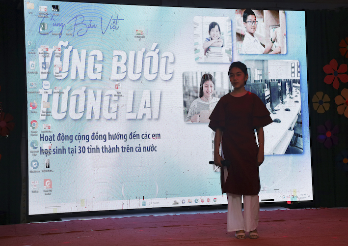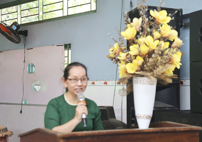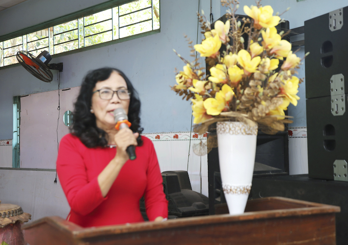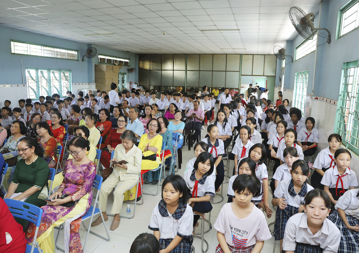 Báo cáo tại buổi lễ, Cô Hiệu Trưởng cho biết những mặt thuận lợi và khó khăn của nhà trường: