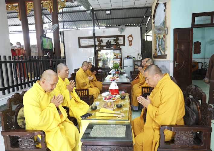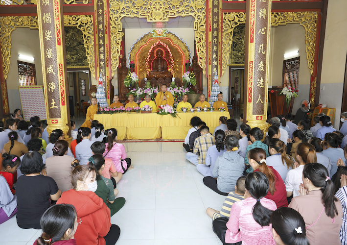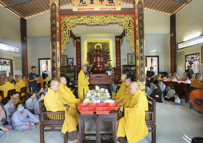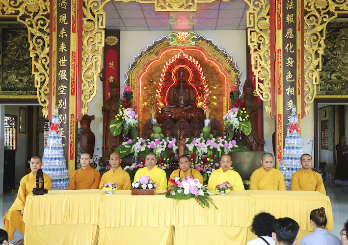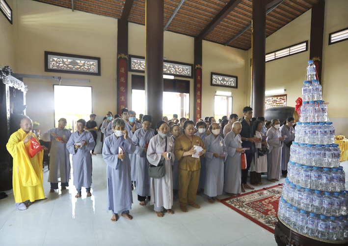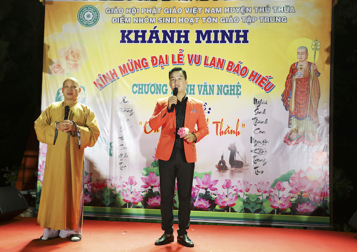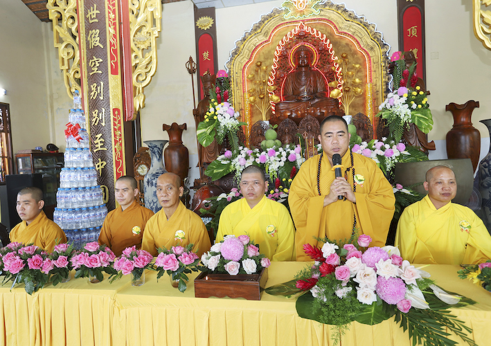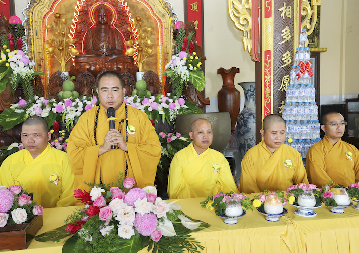 Hoà thượng Thích Thiện Huệ – Thành viên HĐCM, Chứng minh BTS.GHPGVN tỉnh Long An ban đạo từ tại buổi lễ: “Nhân mùa Vu Lan Báo Hiếu lại trở về, phật tử tại đạo tràng cũng đã được chư tôn đức giảng dạy đầy đủ ý nghĩa về công đức sanh thành cù lao dưỡng dục của Cha Mẹ. Là người phật tử chân chính phải biết báo đáp công ơn của Thầy Tổ, ơn của Tam Bảo và ơn Chúng sanh vạn loài. Chư tôn đức Tăng Ni nhị bộ nhận lãnh pháp y cúng dường của phật tử để hướng dẫn cho mọi loài chúng sanh nương nhờ công đức tu học trong 3 tháng an cư kiết hạ. Chư tôn đức rất lấy làm hoan hỷ chứng minh cho tấm lòng hiếu tâm, hiếu hạnh của phật tử cũng như phụng sự cho Tam bảo, phụng sự cho chư tôn thiền đức Tăng Ni. Giờ đây chư tôn đức Tăng Ni nhị bộ ngưỡng nguyện mười phương chư phật gia hộ cho quý phật tử; Người đã quá vãng trực vãng Tây Phương. Người còn được tăng phước tăng thọ. Gia đình của quý vị được an vui, hanh phúc và con cháu luôn ngoan hiền. Tất cả mọi thắng duyên đều được thành tựu tốt đẹp”.