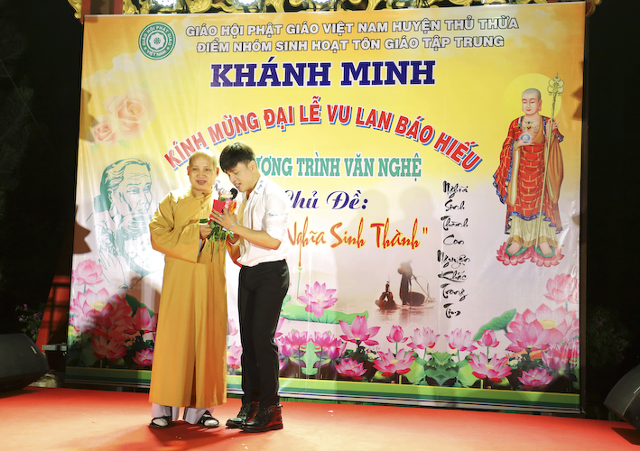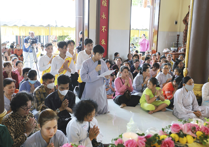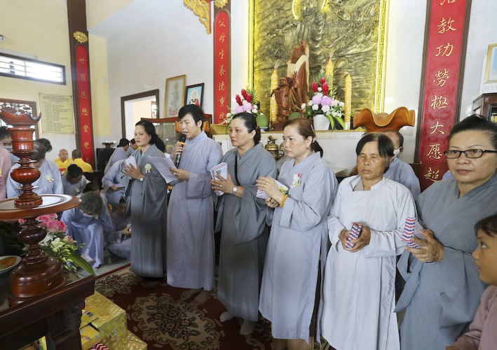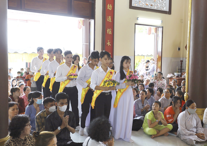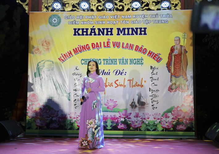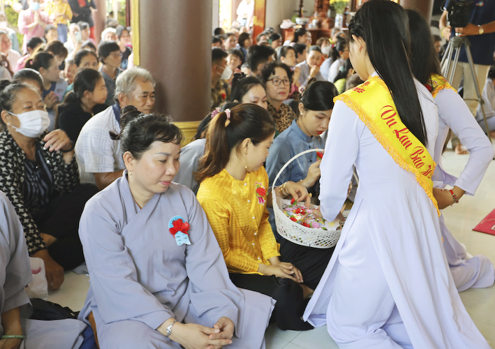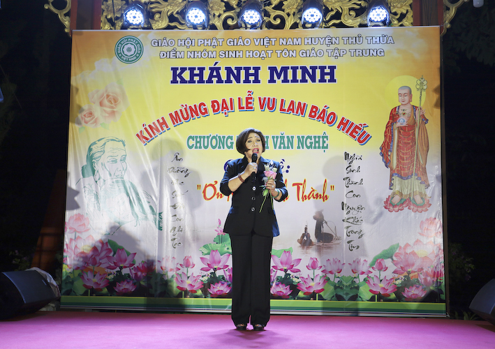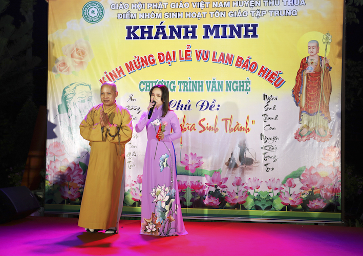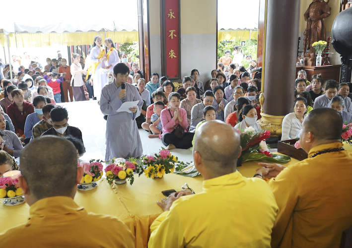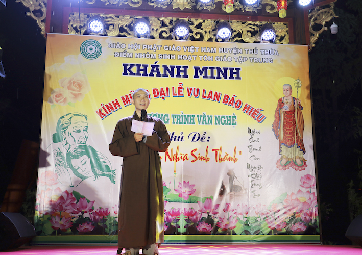Sau nghi thức dâng hoa, phật tử Minh Chánh đã thay mặt cho toàn thể phật tử tại đạo tràng diễn đọc Hoài niệm Vu Lan kính dâng lên chư tôn thiền đức chứng minh như nói lên những tâm tư xuất phát từ tấm lòng của những người con hiếu thảo tưởng nhớ đến ân đức lớn lao của hai đấng sanh thành khả kính.