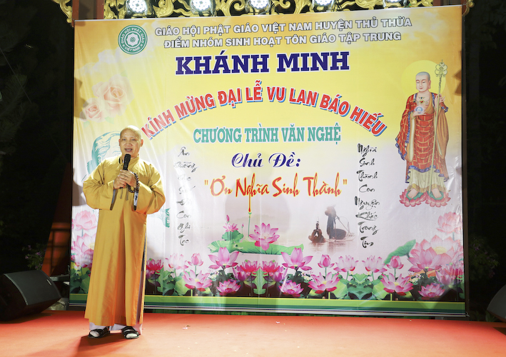 Hôm nay trong bầu không khí trang nghiêm, đạo tràng chùa Khánh Minh chúng con, thể hiện tấm lòng báo đức thù ân trong muôn một. Đó cũng chính là lý do của buổi lễ hôm nay.