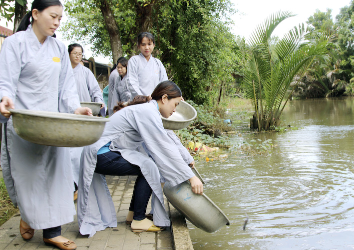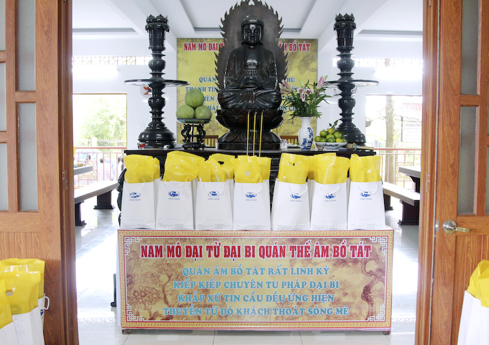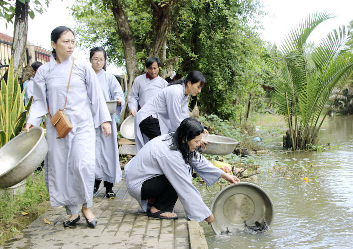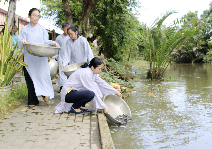 Vào lúc 09 giờ sáng, chương trình của buổi lễ kỳ an được bắt đầu gồm nghi thức phóng sanh và sau đó là nghi thức tụng Phẩm Quán Thế Âm Bồ Tát Phổ Môn, phẩm thứ 25, Kinh Diệu Pháp Liên Hoa. Xin hướng nguyện công đức lành nầy cầu cho các công ty có tên trong danh sách luôn gặp nhiều thắng duyên trong việc kinh doanh và cầu cho toàn thể ban lãnh đạo các công ty cho đến toàn thể cán bộ công nhân viên hiện tiền được vạn sự bình an – kiết tường như ý.