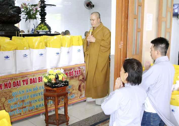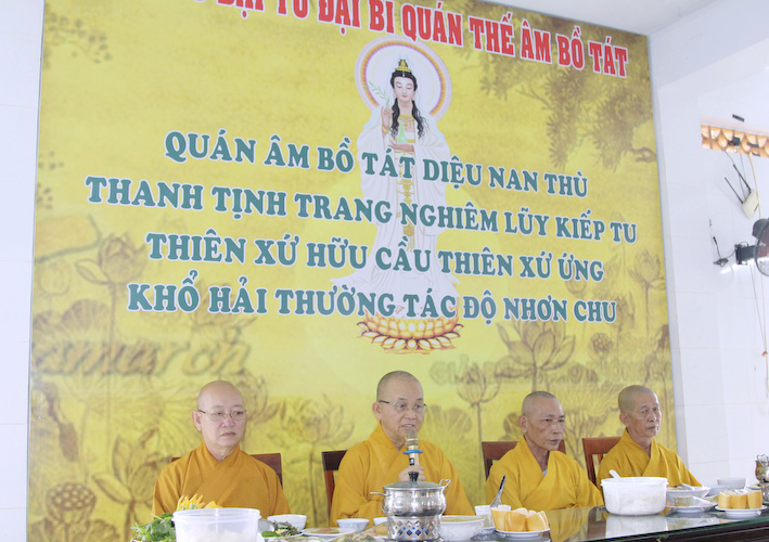 Về chứng minh và ban đạo từ trong buổi lễ kỳ an, Hoà thượng Thích Minh Thiện đã thay mặt chư tôn thiền đức Tăng Ni tán thán gia đình Phật tử Lê Việt Tiến pháp danh Chánh Thiện Đức và Phật tử Trương Thị Lệ Khanh pháp danh Chơn Đức Hạnh đã có công lao to lớn trong việc hộ trì Tam Bảo trải qua nhiều năm. Làm tất cả mọi hạnh lành của một người con Phật khắp ba miền Nam, Trung, và Bắc. Hoà thượng cũng đã có lời kính chúc ban lãnh đạo các công ty vượt qua mọi khó khăn trong công việc. Đồng thời kính chúc sức khoẻ và sự bình an đến tất cả các thành viên trong gia đình Phật tử Chơn Đức Hạnh và toàn thể cán bộ công nhân viên luôn được dồi dào sức khoẻ và công việc kinh doanh ngày càng được thuận lợi.