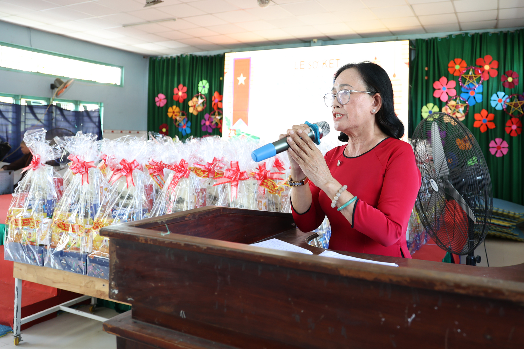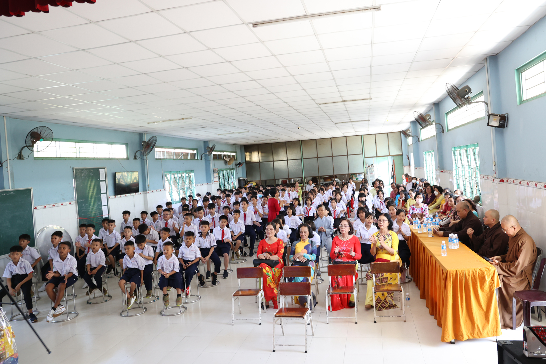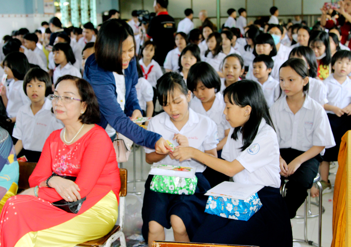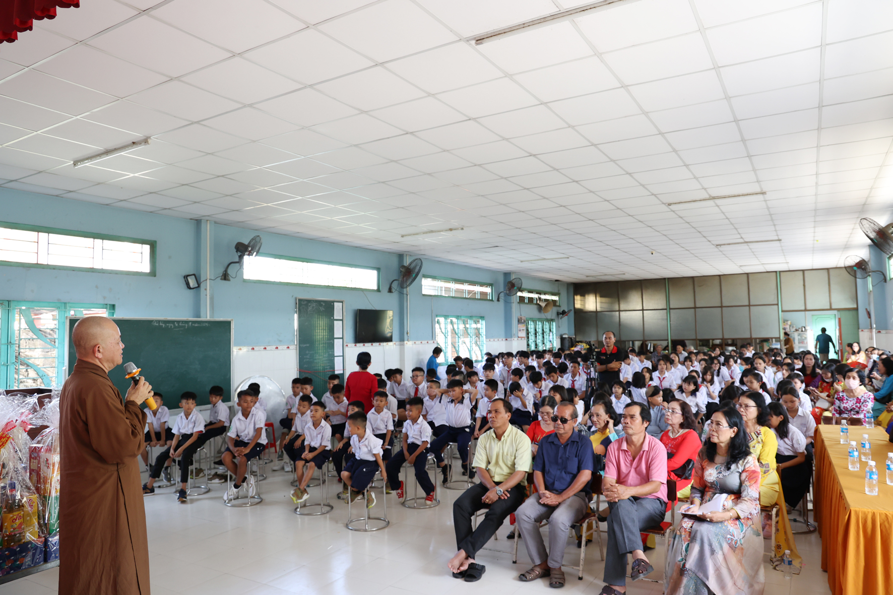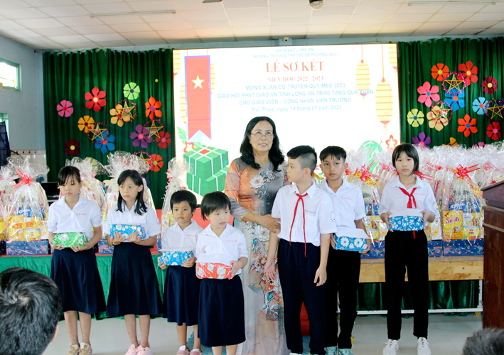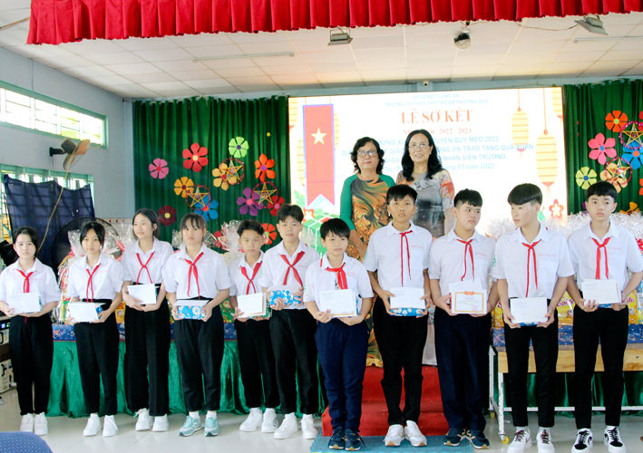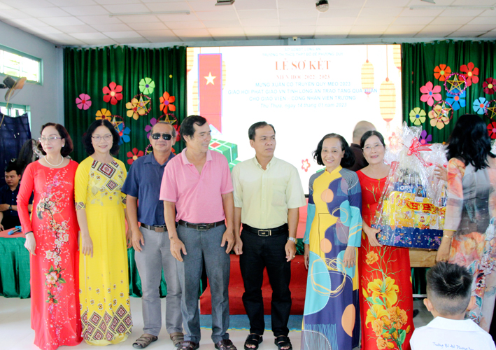 Nhân dịp này Hòa thượng Thích Minh Thiện đã vận động đại đức Thích Đức Nhân, chùa Linh Phước, huyện Châu Thành 62 phần quà gồm nhu yếu phẩm như bánh mức cho ngày tết. Mỗi phần quà trị giá 450.000đ. Tổng trị giá quà là 27.900.000đ. Hòa thượng Thích Minh Thiện ủng hộ quý thầy cô giáo nhân dịp tết đến xuân về mỗi vị một bao thư tiền mặt 500.000đ x 62 = 31.000.000đ. Như vậy mỗi phần quà trị giá 950.000đ. Tổng trị giá phần quà trao tặng quý thầy cô nhân ngày sơ kết học kỳ I – năm học 2022 -2023 là 58.900.000đ (năm mươi tám triệu, chín trăm ngàn đồng).