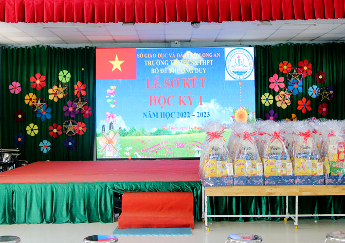 Lúc 2 giờ 30 phút, chiều ngày 14 tháng 01 năm 2023 (nhằm ngày 23 tháng Chạp năm Nhâm Dần), tại Trường Tiểu Học – THCS – THPT Bồ Đề Phương Duy, Ban Giám hiệu nhà trường và học sinh đã long trọng tổ chức lễ sơ kết học kỳ I, năm học 2022 -2023.