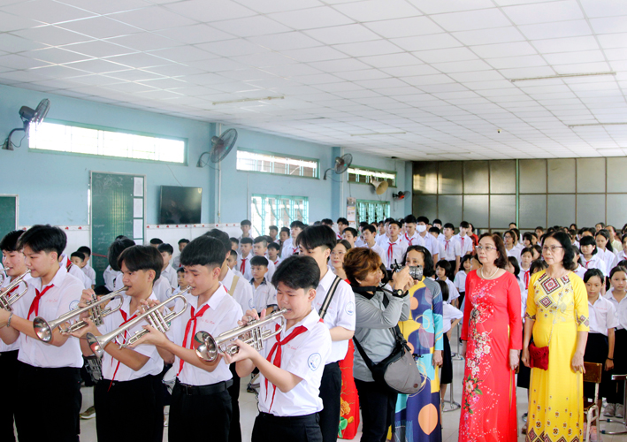 Sau nghi thức chào cờ trang nghiêm và long trọng, buổi lễ sơ kết niên học 2022 -2023 với chủ đề Mừng Đảng – Mừng Xuân chính thức được bắt đầu.